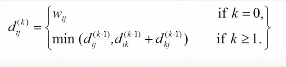 dij(0) ์ ์๋ฌด๊ณณ๋ ๊ฑฐ์ณ์ค์ง ์๊ณ ์ ์ i ์์ ์ ์ j๊น์ง ๊ณง๋ฐ๋ก ์ด๋ํ ๊ฒฝ์ฐ๋ฅผ ์๋ฏธํ๋ค. ๊ทธ๋ฆฌ๊ณ ์ด๊ฒ์ ๋ค๋ฅด๊ฒ ํํํ๋ฉด, ์ ์ i์ j ์ฌ์ด์ ๊ฐ์ ๊ฑฐ๋ฆฌ๋ฅผ ์๋ฏธํ๊ธฐ ๋๋ฌธ์ ์ฐ๋ฆฌ๋ wij ๋ผ๊ณ ๋ ํํํ ์ ์์ ๊ฒ์ด๋ค.
