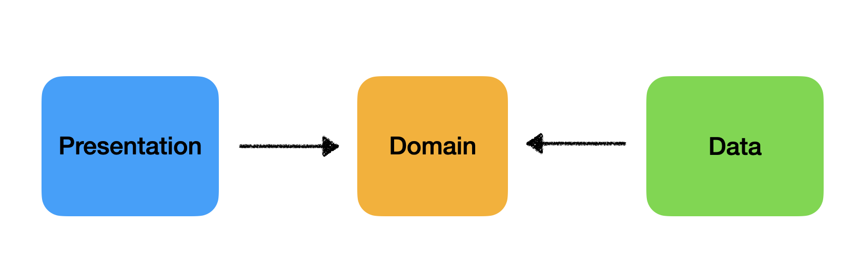 ํด๋ฆฐ ์ํคํ ์ฒ์ ํต์ฌ์ ๋ด๋ถ์ ์๋ ๊ณ์ธต์ด ์ธ๋ถ์ ์๋ ๊ณ์ธต์ ์์ง ๋ชปํ๊ฒ ํ๋ ๊ฒ์ ์์ต๋๋ค. ์ฆ, Domain ๋ ์ด์ด๋ Presentaion ๋ ์ด์ด๋ Data ๋ ์ด์ด๋ฅผ ์ ๋ ์ง์ ์ฐธ์กฐํ์ง ์์ต๋๋ค. ๊ทธ๋์ ๊ฐ ๊ณ์ธต ๊ฐ ์์กด์ฑ์ ๋ฐฉํฅ์ ์ด๋ ๊ฒ ๋ฉ๋๋ค.