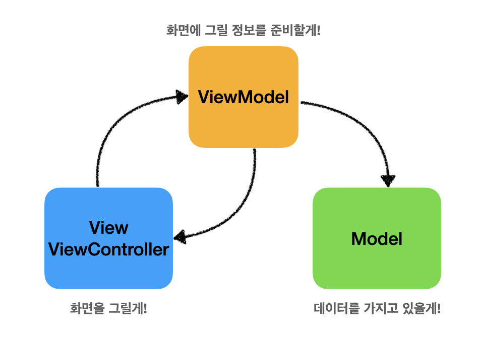 ์ด ํ๋ฉด์ ๋ํด์ ์ฑ ๊ตฌ์กฐ๋ฅผ MVVM์ผ๋ก ๋๋๋ฉด ์๋์ฒ๋ผ ๋๋ ์ ์์ต๋๋ค.