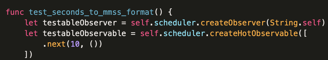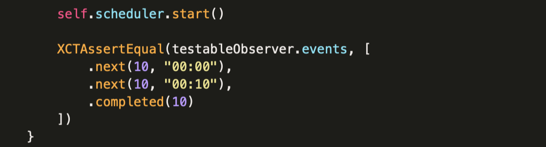 ๊ทธ๋์ ์ด์ฌํ ์์นญ์ ํด๋ณธ ๊ฒฐ๊ณผ RxTest ๋ผ์ด๋ธ๋ฌ๋ฆฌ๋ฅผ ์ฌ์ฉํด์ ๊ฐ์์ ์๊ฐ์ input ๋ฐ์ดํฐ๋ฅผ ๋ฐฉ์ถ์ํค๊ณ ์ด ๋ฐ์ดํฐ์ ๋ํด ๋ฐ์ํ๋ ๊ฒฐ๊ณผ ๊ฐ๋ค์ ํ ์คํธํ๊ธฐ๋ก ๊ฒฐ์ ํ์ต๋๋ค.