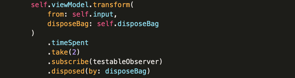 ์ด์ ๋ทฐ ๋ชจ๋ธ์ input์ ouput์ผ๋ก ๋ณํํ๋ transform ๋ฉ์๋๋ฅผ ์คํํ๊ณ ouput์ ์๋ timeSpent ํ๋กํผํฐ๋ฅผ ๊ตฌ๋ ํด ํ ์คํธ์ฉ ์ต์ ๋ฒ์ ๋ฐ์ธ๋ฉ์ ํด์ค๋๋ค.