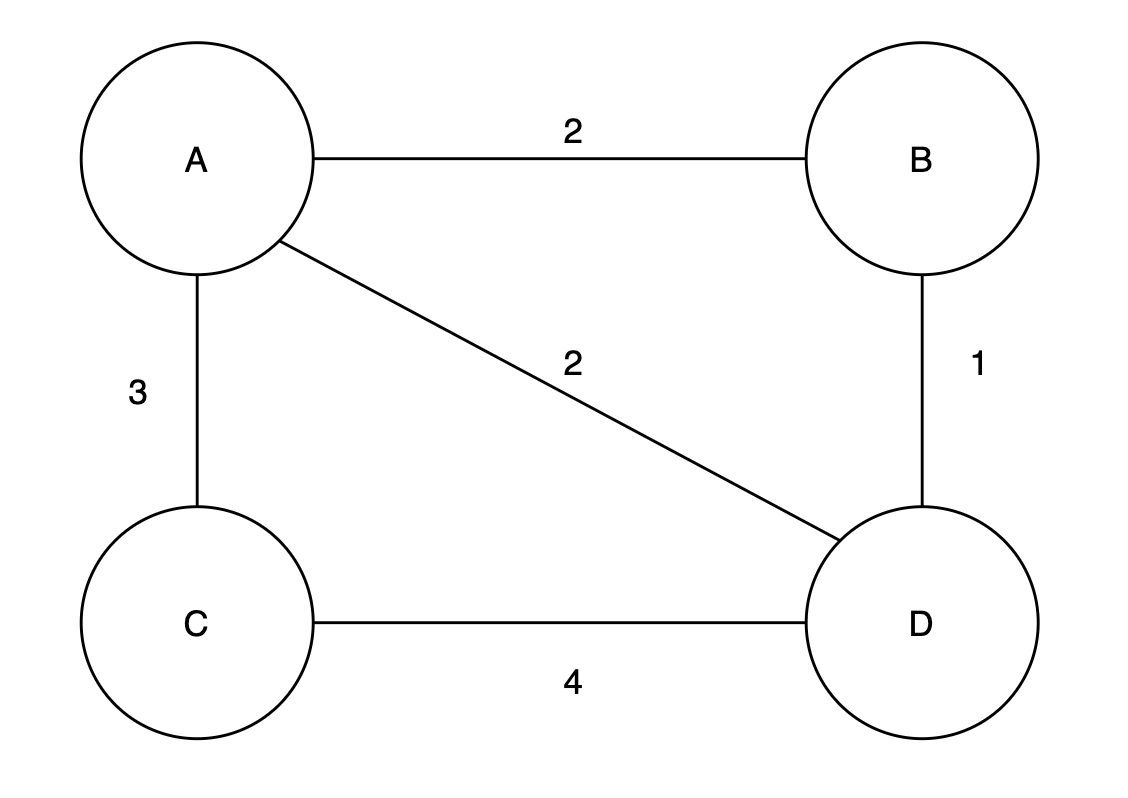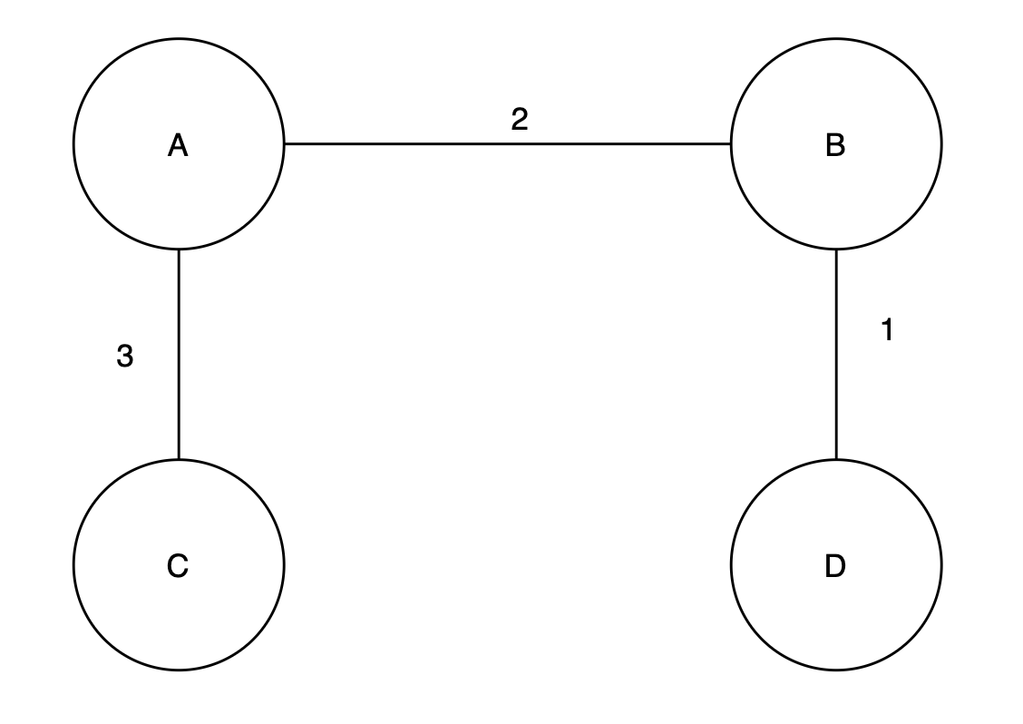 ์ ์ ๊ฐ์ ๊ทธ๋ํ๊ฐ ์์ ๋, ํ์ ๋ฐฉํฅ์ ์ด๋๋ก ๋๋์ง์ ๋ฐ๋ผ์ ํ์์ ๋ง์นํ ์์ฑ๋๋ ํธ๋ฆฌ์ ๊ฐ์ค์น๊ฐ ๋ฌ๋ผ์ง๋ค. ์๋ํ๋ฉด ์ ๊ทธ๋ํ์ ์ ์ ์ ๊ฐฏ์๋ 4๊ฐ์ด๊ธฐ ๋๋ฌธ์ ์ฃผ์ด์ง ๋ชจ๋ ๊ฐ์ ์ ์ฌ์ฉํ์ง ์๊ณ 3๊ฐ๋ง ์ฌ์ฉํ๋ฉด ํธ๋ฆฌ๊ฐ ๋ง๋ค์ด์ง๊ธฐ ๋๋ฌธ์ด๋ค.